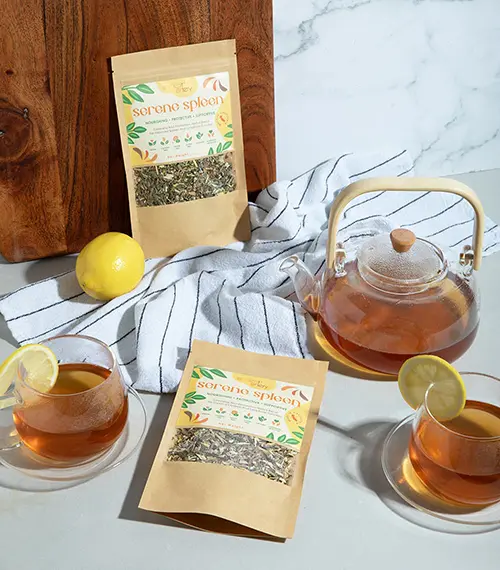“I offer four products: Serene Spleen tea, Unpack capsules, Reclaim parasite potion, and Plenty iron drops. Each targets different deficiencies and stagnation within the body. I created Serene Spleen tea because, unlike most teas focused on the lymphatic system, mine supports the spleen—an often overlooked organ—and also benefits the respiratory and gastrointestinal systems.